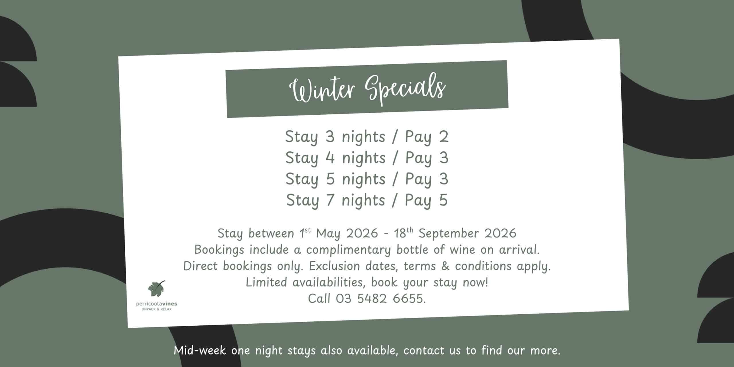 One of the best things about the “Unpack & Relax” experience at Perricoota Vines is not having to leave your villa once you check-in. Our fresh breakfast baskets are available to order prior to arrival to pick up upon check-in. Packed with fresh, nutritious breakfast items, you can whip up a hearty breakfast in minutes with the breakfast basket supplies in your villa’s fully self-contained kitchen.